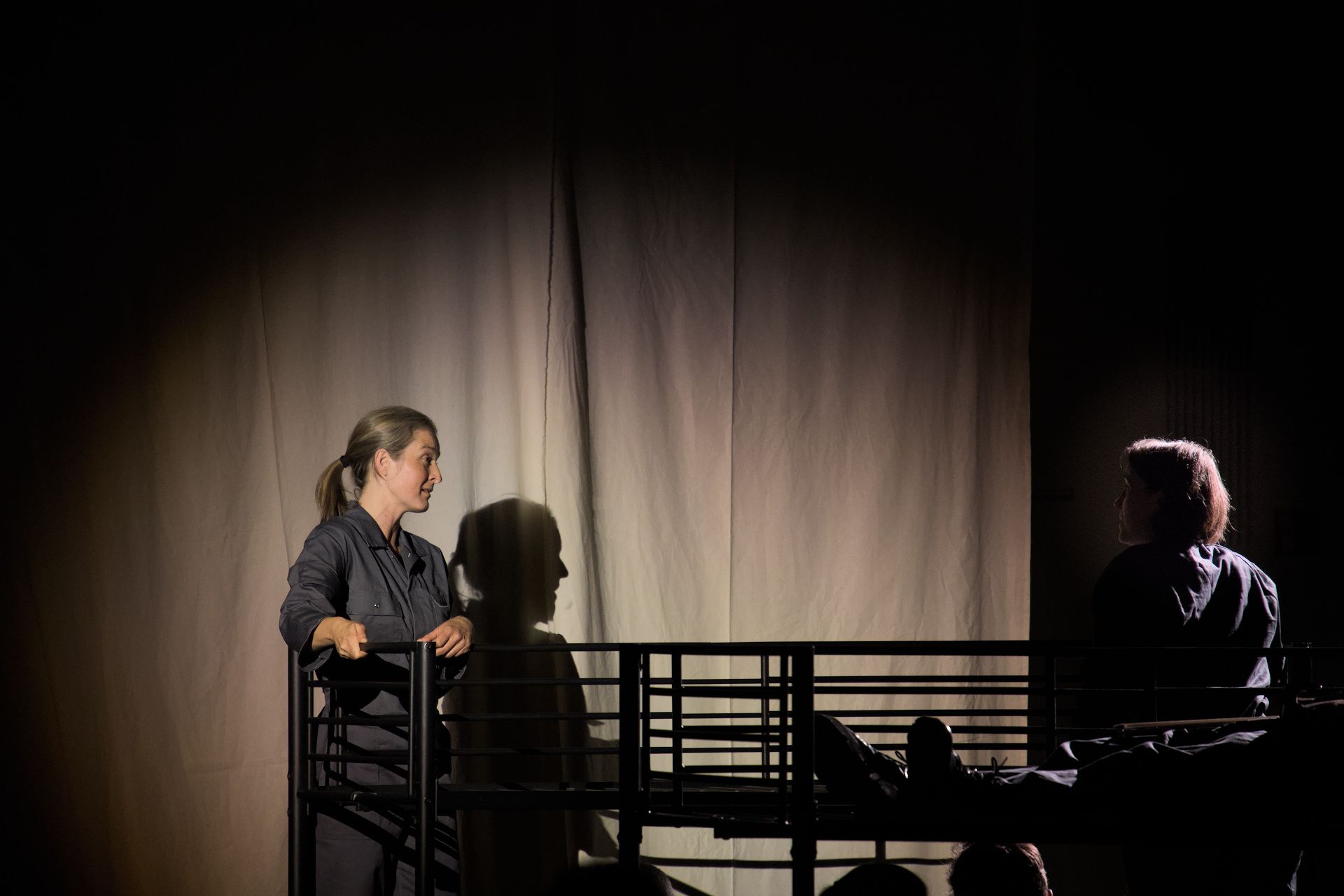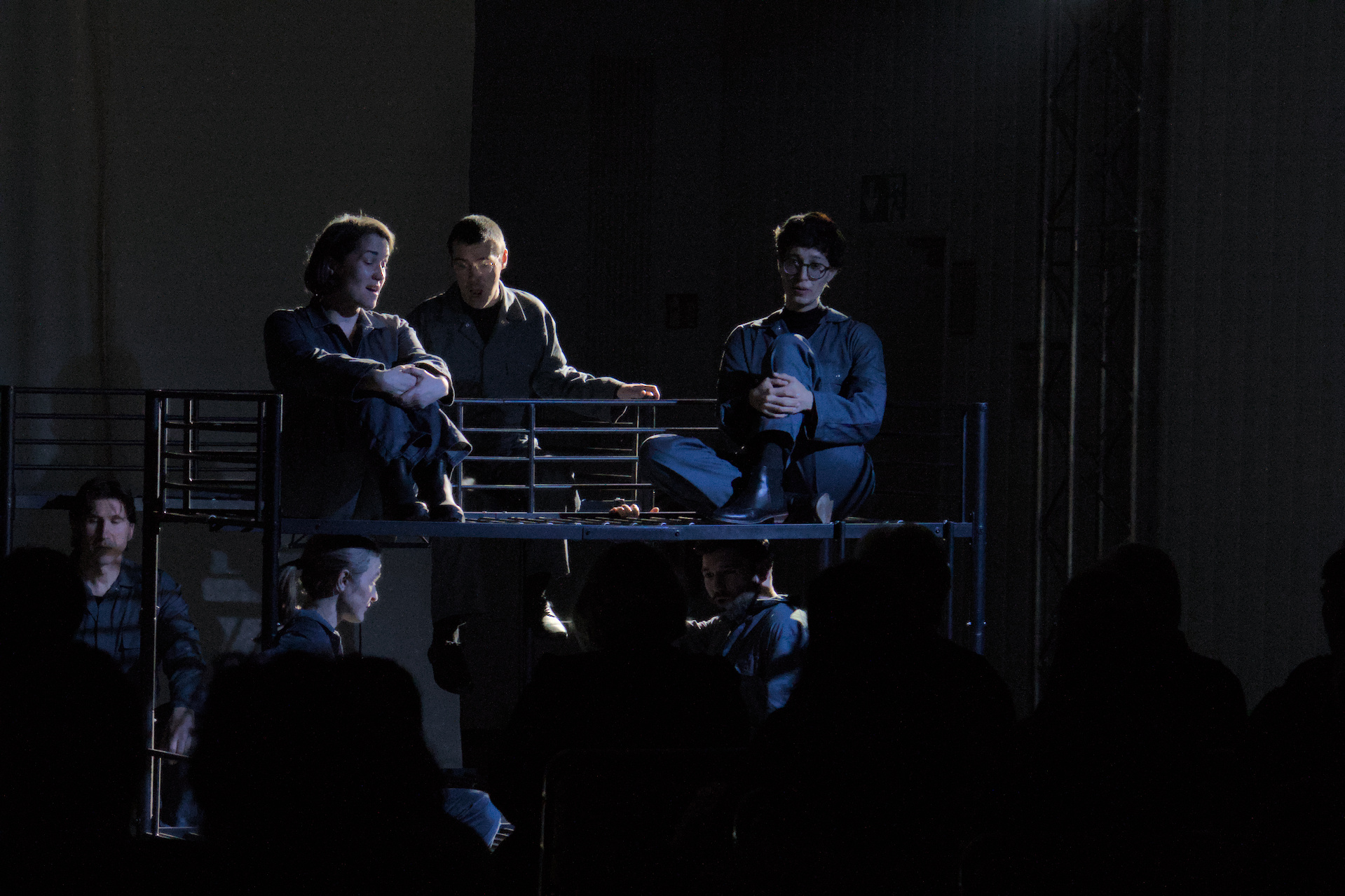 The lighting design translates the colorless, monotonous everyday life of Hoheneck into a grayscale, filmic light language that feels drained, narrow, and repetitive. Faces, hands, and silhouettes appear only fleetingly, as if in fragments of a black-and-white film, while light and shadow actively control proximity, distance, and isolation between the performers.